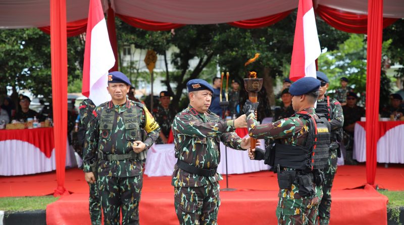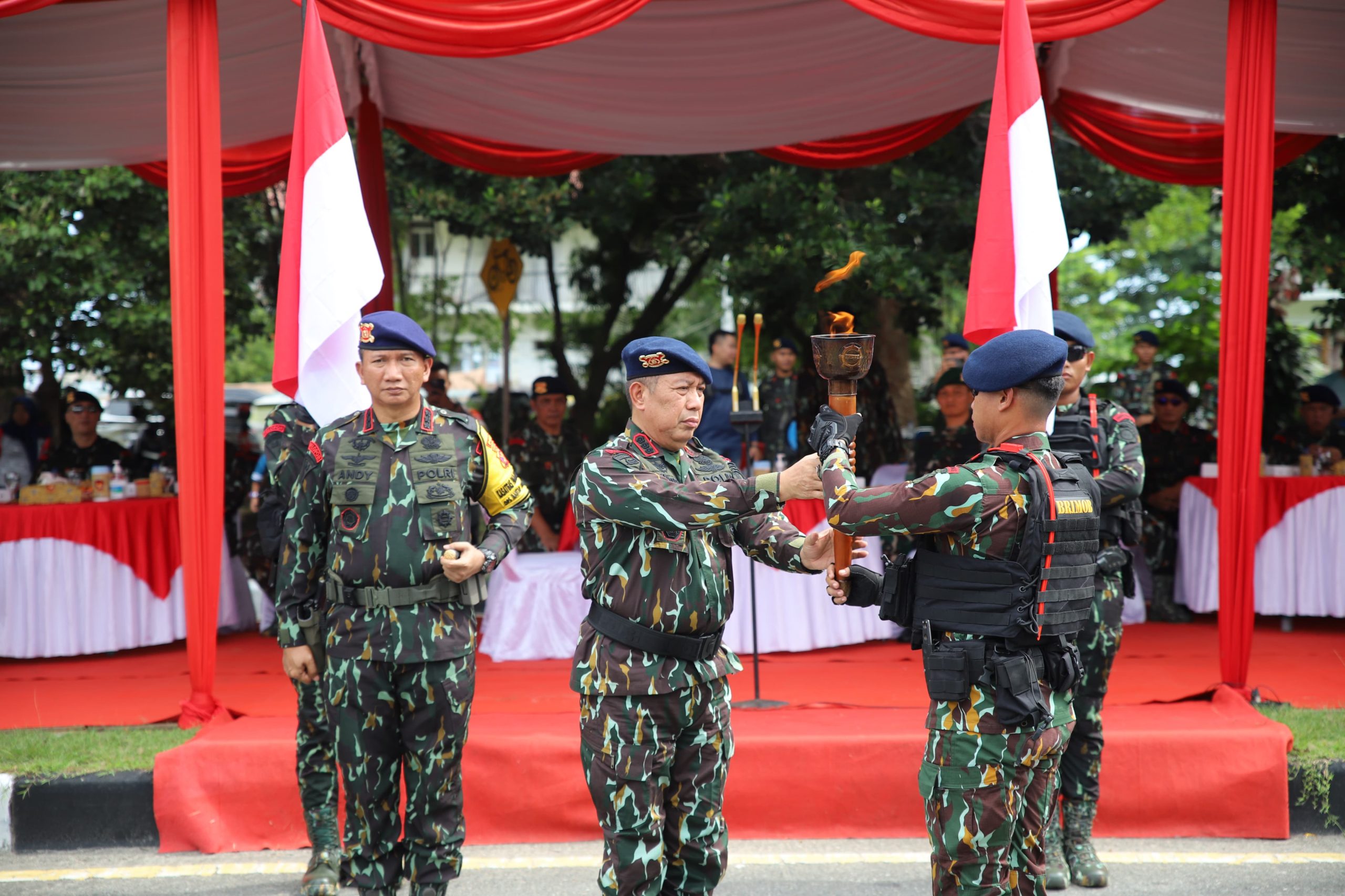 Meriahkan HUT Brimob Ke – 79, Brimob Kaltim dan Yon Zipur 17/AD Gelar Kirab Api Semangat Brigade Mobile