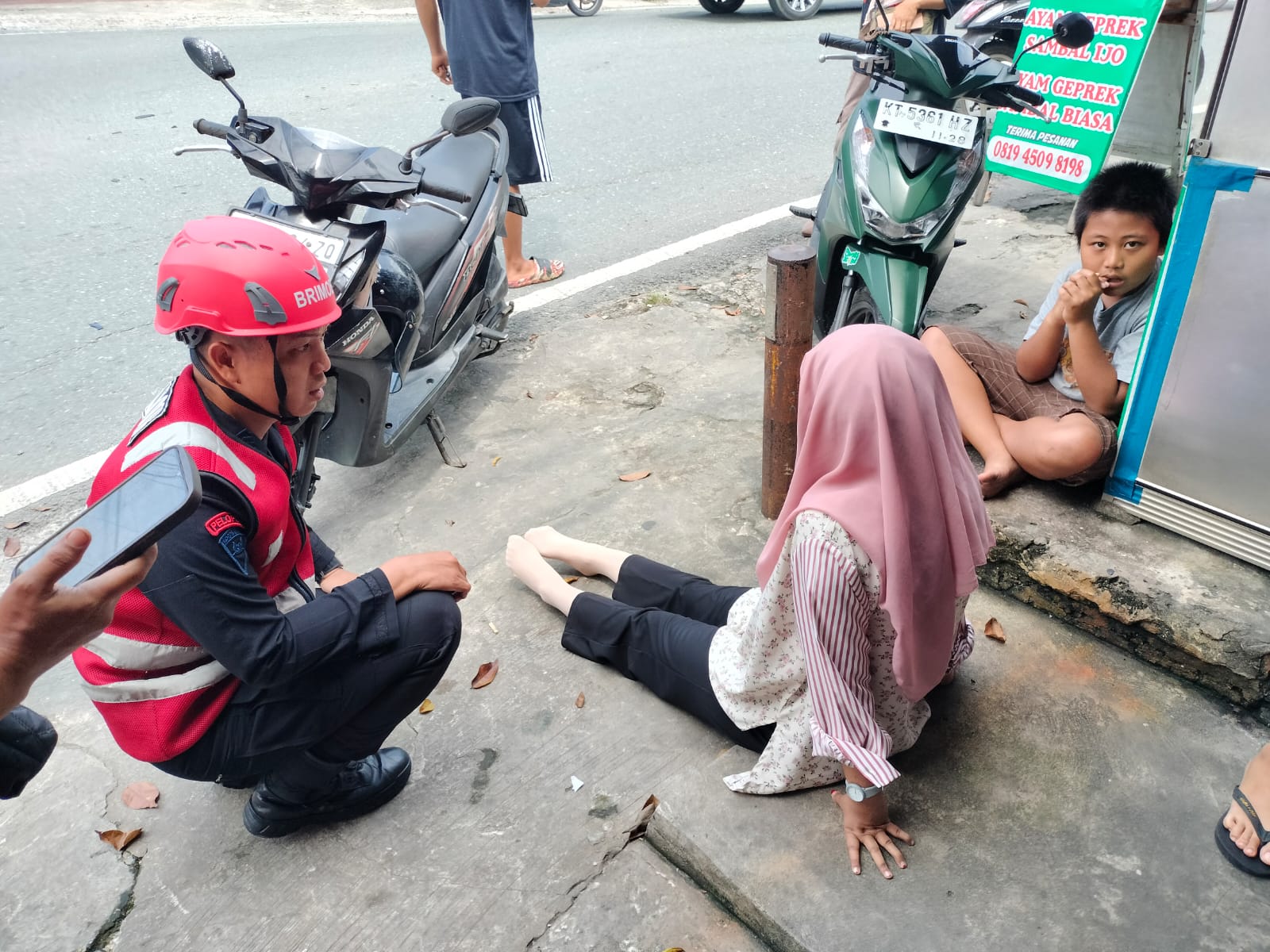 “Tadi, seorang ibu jatuh saat mengendarai sepeda motor dan disenggol oleh motor dari belakang, lalu motornya kabur. Mendapat laporan dari masyarakat tim Respon Bencana Batalyon A Pelopor langsung merapat ke TKP,” kata Kompol Iwan Pamuji dalam keterangannya.