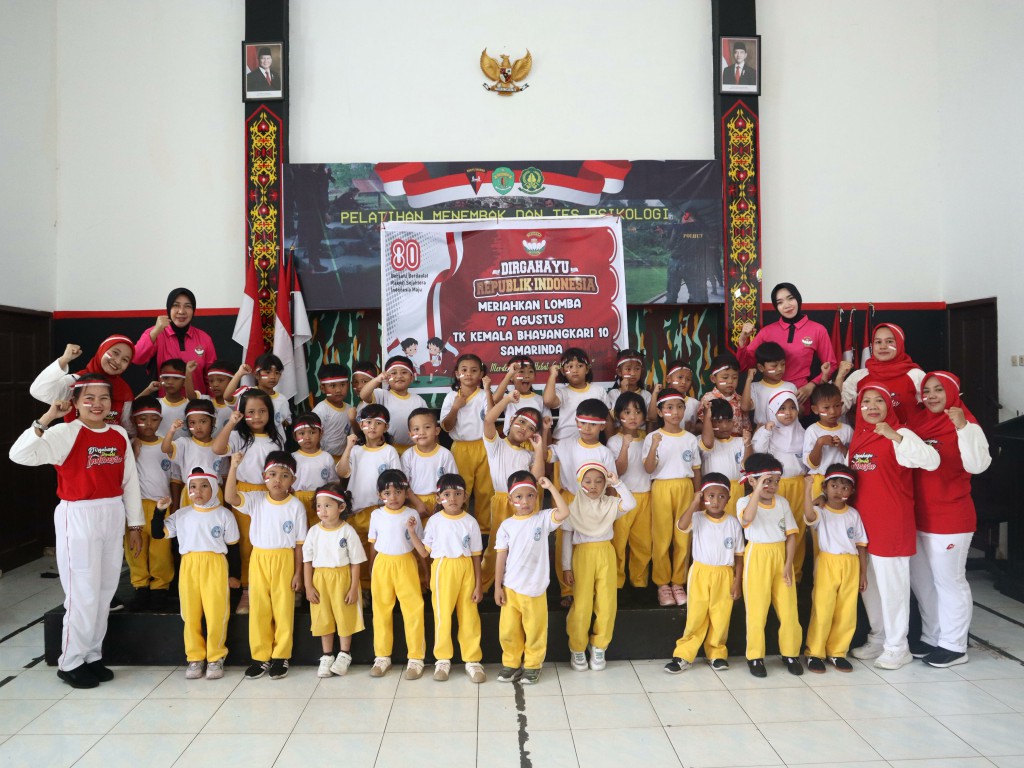 SAMARINDA – TK Kemala Bhayangkari 10 yang berlokasi di Mako Batalyon B Pelopor, menyelenggarakan berbagai perlombaan dalam rangka menyemarakkan Hari Ulang Tahun (HUT) Kemerdekaan Republik Indonesia yang ke-80, pada Jumat (15/08/2025). Acara ini diikuti oleh seluruh siswa-siswi dengan penuh antusiasme, didampingi oleh para guru dan orang tua yang turut memeriahkan suasana. Berbagai lomba tradisional, seperti balap karung, makan kerupuk, dan memasukkan pensil ke dalam botol, menjadi daya tarik utama yang tidak hanya menghibur tetapi juga menanamkan nilai-nilai kebersamaan dan sportivitas sejak dini.