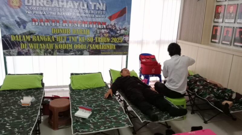 SAMARINDA – Dalam rangka memperingati Hari Ulang Tahun (HUT) Tentara Nasional Indonesia (TNI) ke-80, personel Batalyon B Pelopor Satuan Brimob Polda Kaltim turut serta dalam kegiatan donor darah yang digelar di Makodim 0901/Samarinda, Senin (22/09/2025).