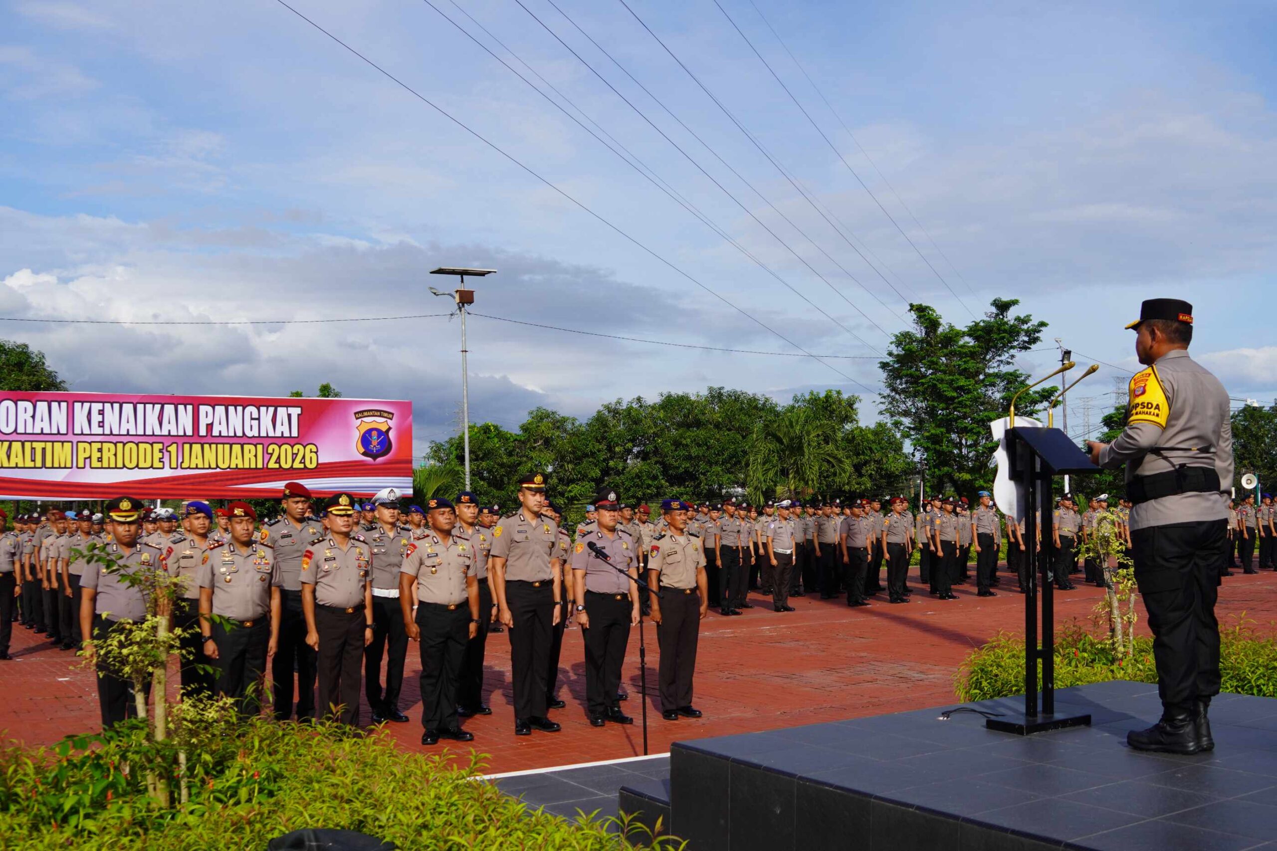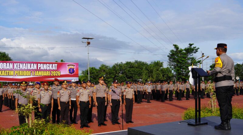 Balikpapan – Suasana khidmat dan penuh kebahagiaan menyelimuti Mapolda Kalimantan Timur di penghujung tahun 2025. Sebanyak 81 personel Satbrimob Polda Kaltim resmi menyandang pangkat satu tingkat lebih tinggi melalui upacara korp raport kenaikan pangkat periode 1 Januari 2026 yang digelar di Lapangan Mapolda Kaltim, Jalan Syarifuddin Yoes, Balikpapan, pada Rabu sore (31/12/2025). Upacara ini dipimpin langsung oleh Kapolda Kaltim, Irjen Pol. Endar Priantoro, S.H., S.I.K., C.F.E., M.H., dan menjadi momentum bersejarah bagi para abdi negara tersebut tepat sebelum menyambut pergantian tahun.