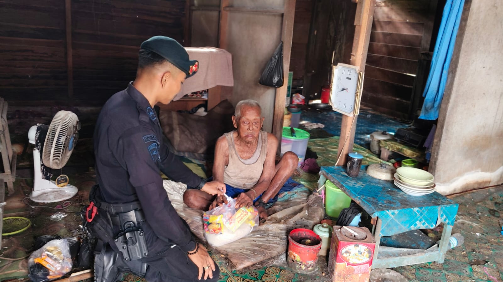 Wujud Bakti untuk Lansia, Brimob Kaltim Sambangi Kediaman Bapak Sari di Pelosok Balikpapan Utara