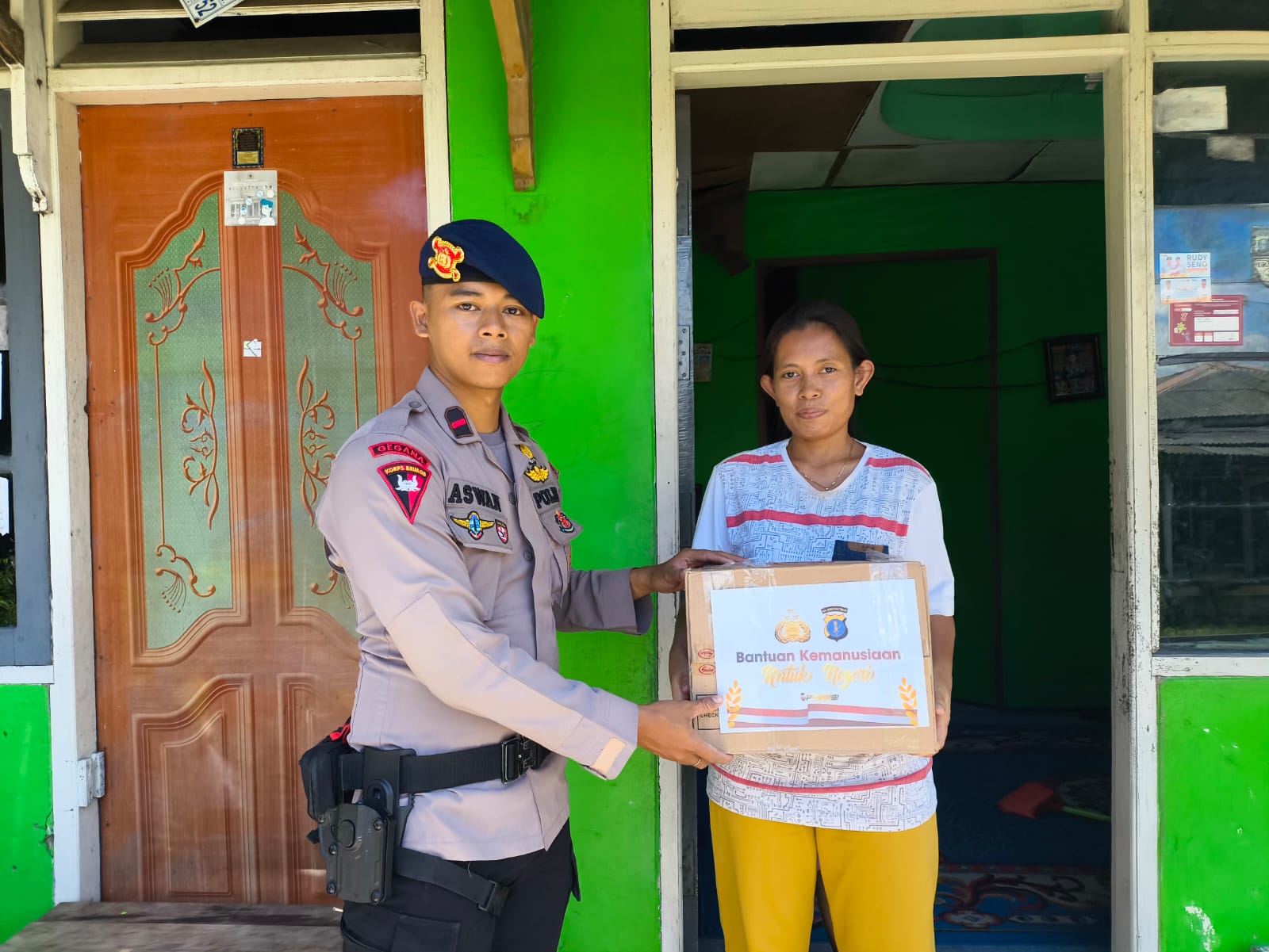 Penyaluran bantuan tersebut dilakukan dengan menyasar warga di Jalan Jenderal Sudirman No. 05, RT 39, Kelurahan Damai Bahagia. Petugas memberikan bantuan kepada Ibu Wa Nuhi dan Ibu Lisa Agustina, yang keduanya merupakan ibu rumah tangga di lingkungan tersebut. Melalui pendekatan pintu ke pintu (door to door), para personel Gegana tidak hanya menyerahkan bantuan materi, tetapi juga menyampaikan pesan-pesan kamtibmas guna memastikan situasi di pemukiman tetap kondusif dan masyarakat merasa aman dengan kehadiran kepolisian.